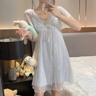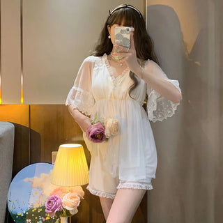 Long-sleeved Sexy Lace Home Clothes Night Gown Sleep Dress