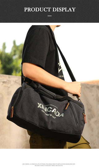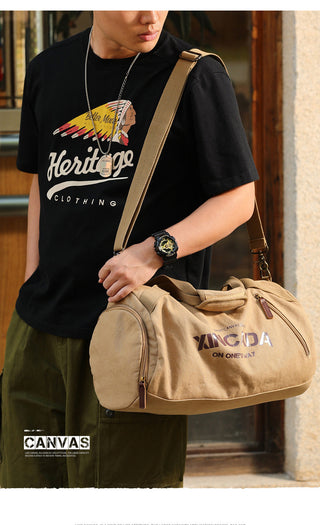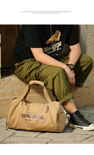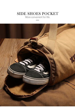 Male Large Capacity Canvas Travel Bags Men Fitness Sports Training Handbag With Shoes Pocket Black Khaki Shoulder Bag XA32M