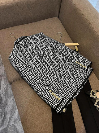 hite Geometric Pattern Jacquard Double-breasted Women Blazer