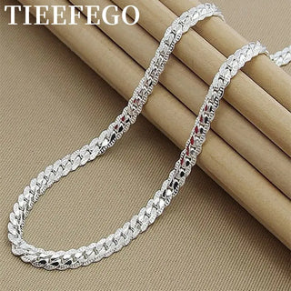 TIEEFEGO 925 Sterling Silver 6mm Side Chain 8/18/20/22/24 Inch Necklace For Woman Men Fashion Wedding Engagement Jewelry Gift