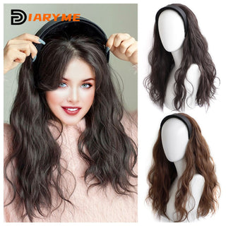 DM Headband Wig Synthetic Long Wavy Hair Wigs With Headband Cosplay Wig Female Natural Heat Resistant Half Hair Wig For Women