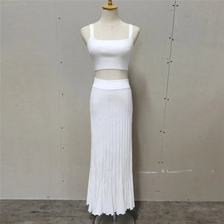 Pleated Knitted Skirt Suits For Women Long Dress Sets Summer