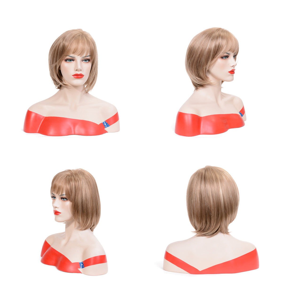 Womens Fashion Bob Wig Short Blonde Bob Wigs Black Roots Heat Resistant Synthetic Ombre Bob Hair Fancy Dress Party Wig for Women