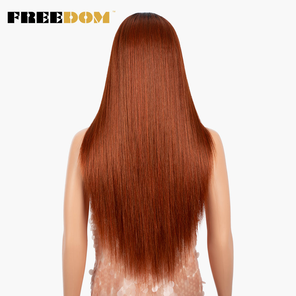 FREEDOM Synthetic Lace Wig 28 Inch Long Straight Hair Wigs Soft Red Orange Blonde Lace Front Wigs For Black Women Cosplay Wigs