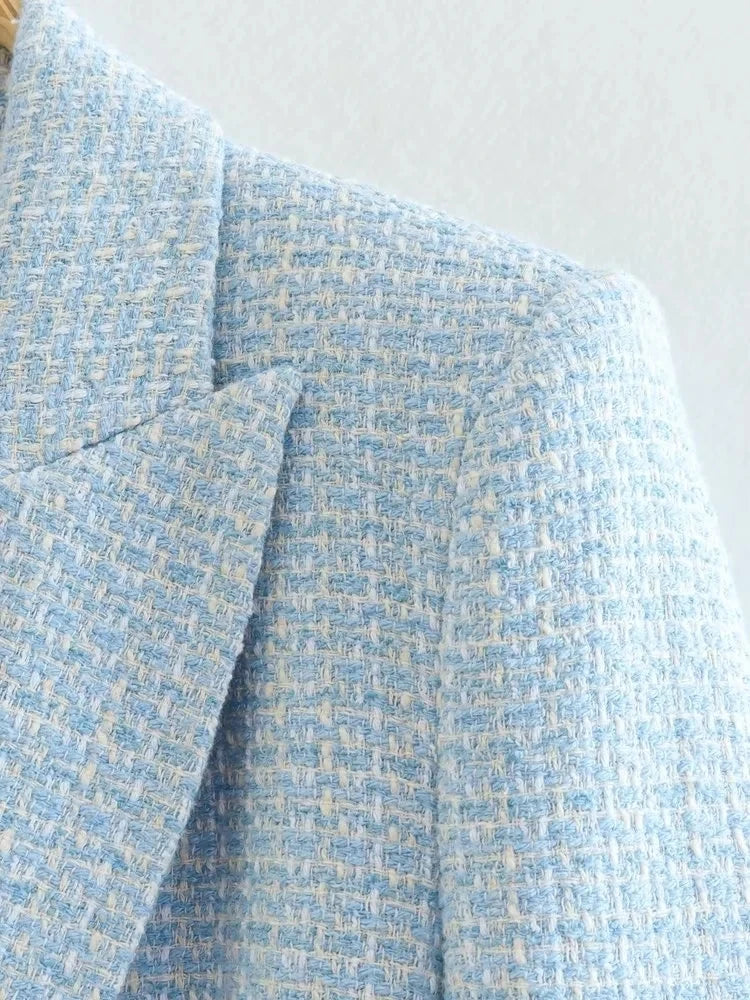 Fashion Women Beige Tweed Blazer Jacket For Office Lady