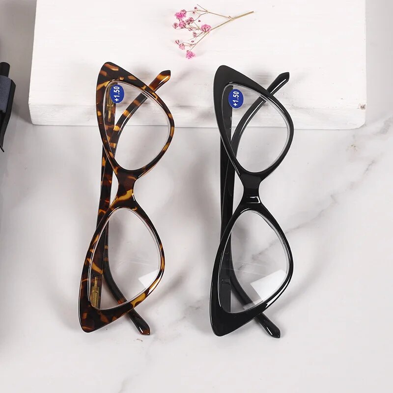 Women’s Cat Eye Anti-Blue Light Reading Glasses Clear Lens Black Leopard Frame
